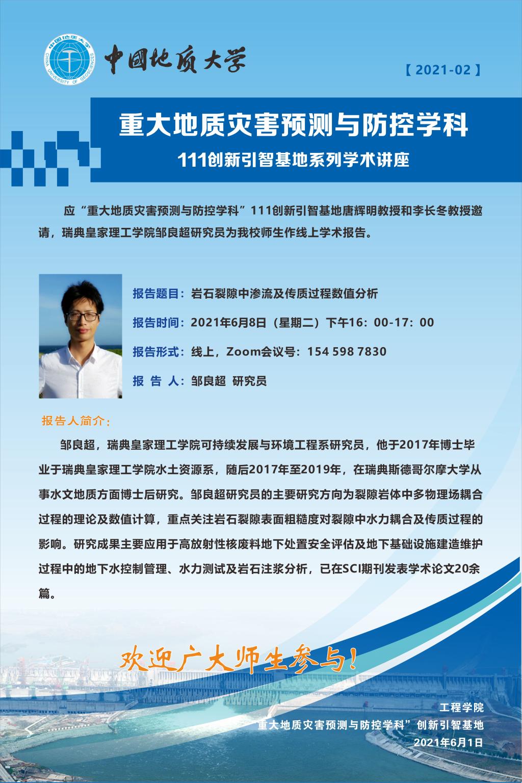 2021年度“重大地质灾害预测与防控学科”111创新引智基地系列学术讲座(2)