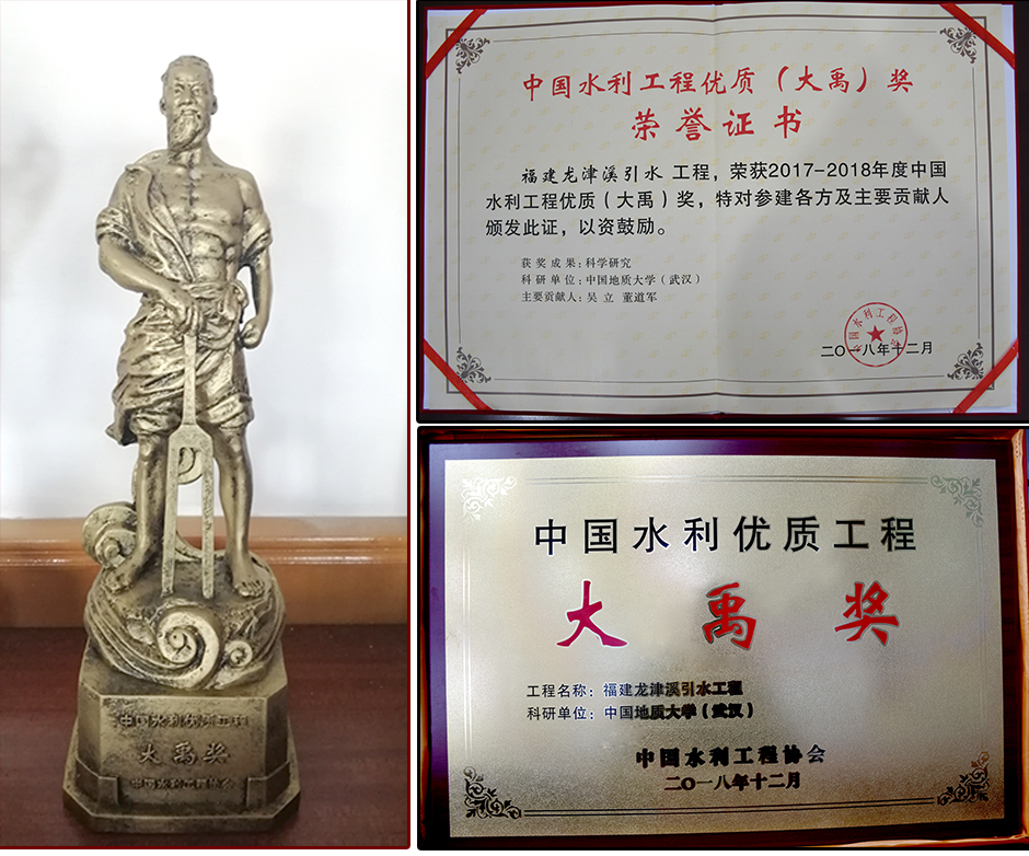 (通讯员 胡燕)日前,2017-2018年度中国水利工程优质(大禹)奖评选结果揭晓,beat365在线唯一官网吴立教授、董道军副教授负责的福建龙津溪引水工程获奖。