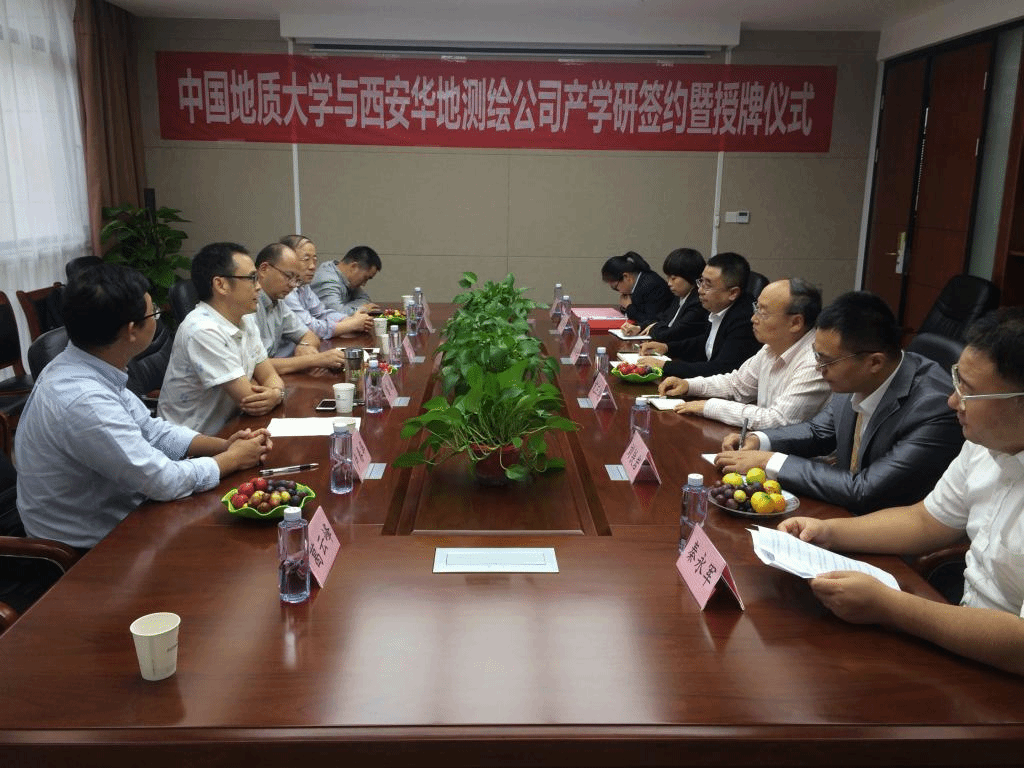 在西安华地测绘科技有限公司,总经理鲁尚强、首席专家亢三焕、营销部经理刘铁岩、财务部经理宋娇艳、人力资源经理秦永军、行政经理任飞霞参与了座谈。座谈会上,总经理鲁尚强代表西安华地测绘科技有限公司致欢迎辞,并介绍了公司的发展概况。窦斌介绍了学校、学院的发展历程,期望双方今后将产学研工作落到实处,预祝取得丰硕成果。beat365在线唯一官网与会人员,还针对地质灾害评价、地学大数据空间信息获取、地质勘探数据通信传输等领域的技术问题,为公司出谋划策,展开了深入交流。窦斌副院长与鲁尚强总经理分别代表beat365在线唯一官网与西安华地测绘科技有限公司,在产学研合作协议上签字。根据协议,双方将发挥各自优势,围绕工程地质勘察行业改革发展,实现信息资源共享、优势互补,在人才培养、学科建设及科研成果转化等方面开展合作。会后,江广长副书记与鲁尚强总经理进行了揭牌仪式。