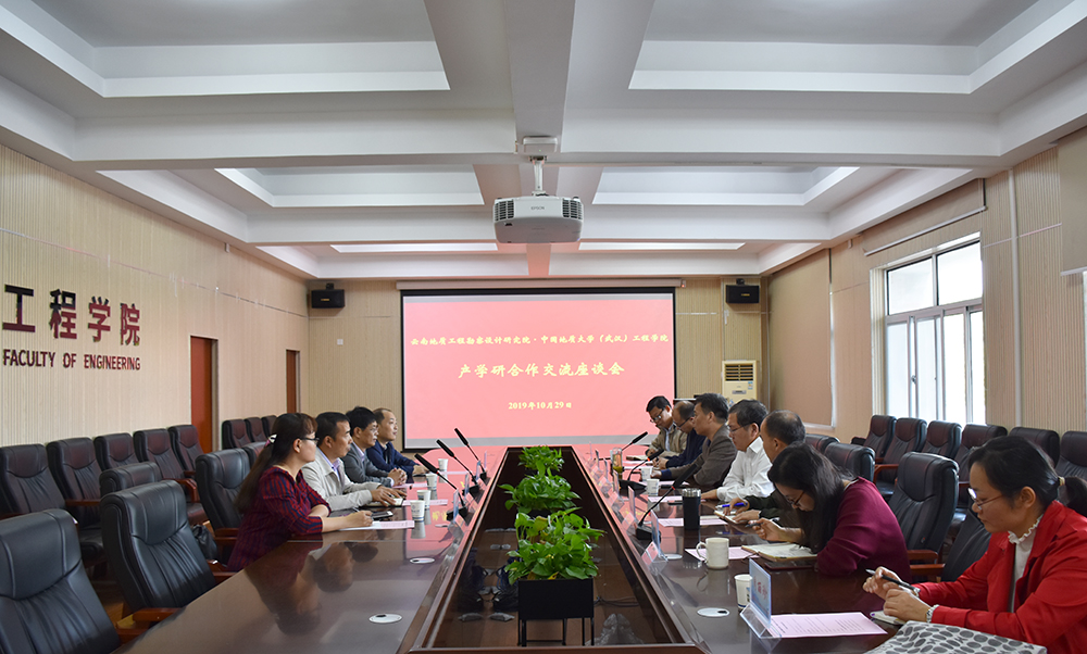 29日下午在工程楼315会议室,云南地质工程勘察设计研究院纪委书记潘进兵、副院长赫念学、副院长李林涛、办公室主任张锦霞一行至校与beat365举行产学研合作交流座谈会。院党委书记陈飞、副院长王亮清、院党委副书记江广长、工程地质与岩土工程系主任章广成、勘察与基础工程系主任卢春华、办公室主任胡燕、土木工程与力学系周丽珍参加了座谈会。江广长主持会议。