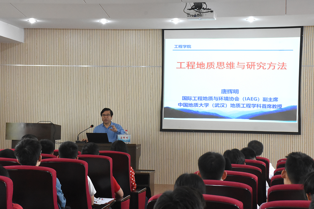 唐辉明教授介绍了工程地质学学科的特点,强调工程地质学研究对象具有演化属性。重点介绍了beat365“3+5”工程地质人才培养模式和现代工程能力导向的教学内容体系,以及beat365在地质工程领域的特色与优势。并与同学们探讨了工程地质思维方法、研究方法、原型试验与监测和空间大数据应用等。最后以滑坡研究为例,讲解了这些内容和方法在滑坡中的实践与成效。