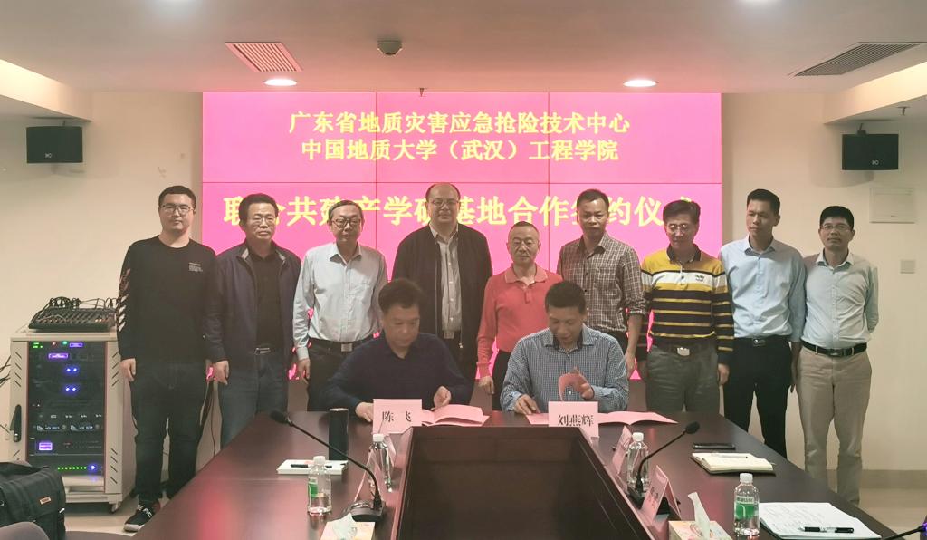 陈飞、刘燕辉签署产学研基地合作协议。根据协议,广东省地质灾害应急抢险技术中心作为beat365在线唯一官网的产学研基地,双方将定期就人才的培训、技术的创新、引进与推广、联合攻关、学生实习等方面开展协商研究。