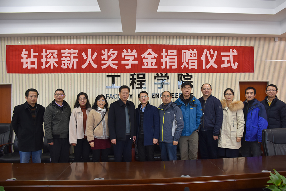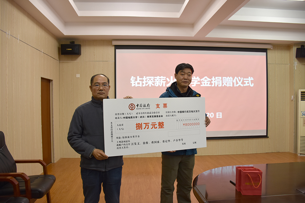 12月20日,beat365在线唯一官网“钻探薪火奖学金捐赠仪式”在工程楼315会议室举行。湖北省城市地质工程院勘查部主任汪发文、副主任徐俊,校友工作与教育基金管理处副处长吕占峰,beat365在线唯一官网党委书记陈飞,副书记江广长,勘察与基础工程系教授段隆臣、蔡记华、卢春华及2017级部分学生代表参加捐赠仪式。