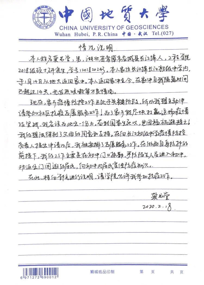 姚文昊 罗卓立 杨昊讯)龚书堂是beat3652018级土木工程硕士研究生,他响应学院学校号召,担任抗击疫情一线的志愿者。