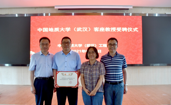 在学术报告开始前,李红丽书记为油新华教授级高工颁发beat365客座教授聘书,学院领导和油新华教授级高工一起合影留念。
