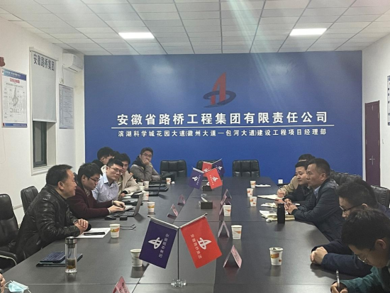 授牌仪式结束后,双方到花园大道项目部进行现场考察,了解工程的进展情况以及工程中出现的问题,并对问题的解决方案进行探讨。现场考察结束后,beat365在线唯一官网老师张伟丽、彭超、吕加贺、曾聪以及四位研究生在花园大道项目部对前期合作的科研课题进行阶段性汇报,并与安徽省路桥集团的项目负责人对相关问题进行了热烈的讨论。与会人员还围绕如何做实做好基地建设工作、联合培养研究生、科研攻关等内容进行了研讨,一致表示将不忘初心,继续加强校企合作,把科研成果应用在祖国大地上,培养出满足企业需求的人才。