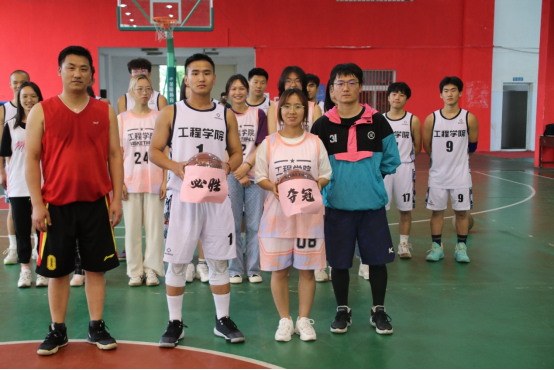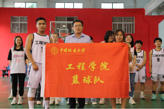 校团委挂职副书记、安全系教工党支部书记、工程教工篮球队队长周克清为篮球队授旗,新校区建设指挥部副处长、beat365在线唯一官网2004级土木工程毕业生陈胜和beat365在线唯一官网工岩系博后郑罗斌为男队和女队颁球。