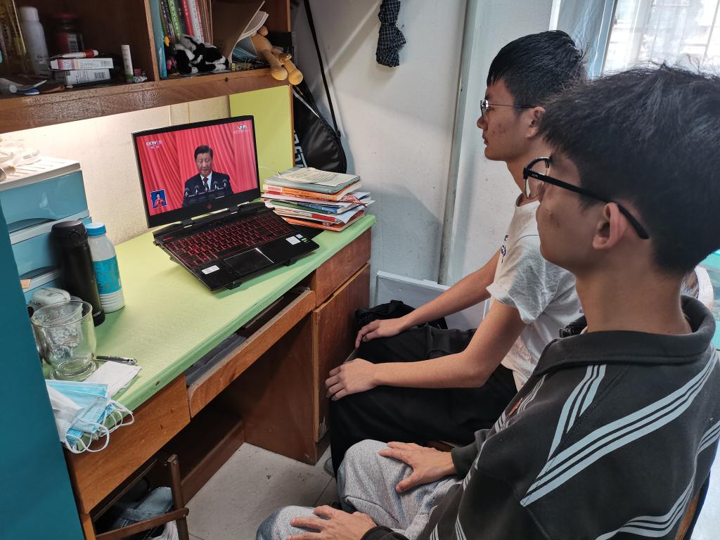 观看大会直播的师生认为,党的十九大以来的5年,以习近平同志为核心的党中央审时度势、守正创新,敢于斗争、善于斗争,团结带领全党全军全国各族人民有效应对严峻复杂的国际形势和接踵而至的巨大风险挑战,以奋发有为的精神把新时代中国特色社会主义不断推向前进,攻克了许多长期没有解决的难题,办成了许多事关长远的大事要事,推动党和国家事业取得举世瞩目的重大成就。