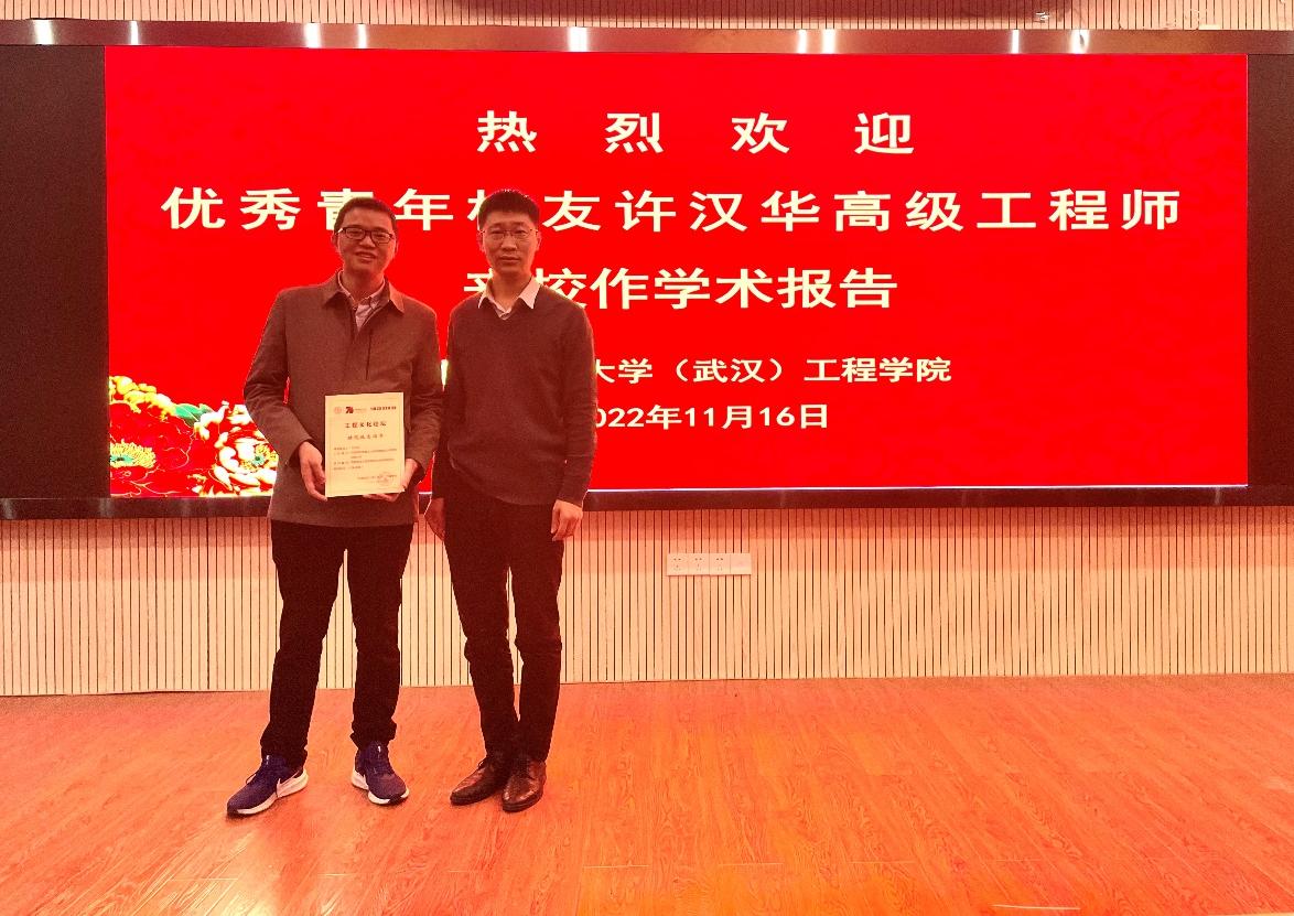 邹俊鹏特任教授对报告进行了总结发言,向许汉华高级工程师颁发了beat365在线唯一官网70周年校庆系列学术活动工程文化论坛特邀报告证书,并合影留念。