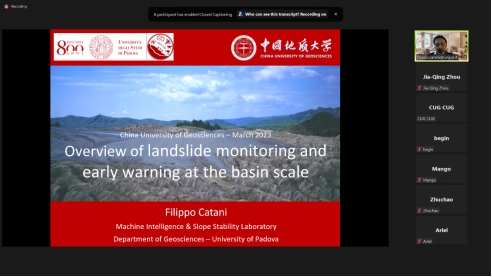 (通讯员:陈文强 叶阳)3月20日至22日,应beat365唐辉明教授和李长冬教授的邀请,意大利帕多瓦大学Filippo Catani教授应邀作客2023年度第1-3期“重大地质灾害预测与防控学科”111创新引智基地系列学术讲座。系列短课采用Zoom在线会议形式,由叶阳特任教授主持,李长冬教授、周佳庆特任教授、张峰特任教授、邹宗兴副研究员等共计40余名师生参加了本次在线短课。