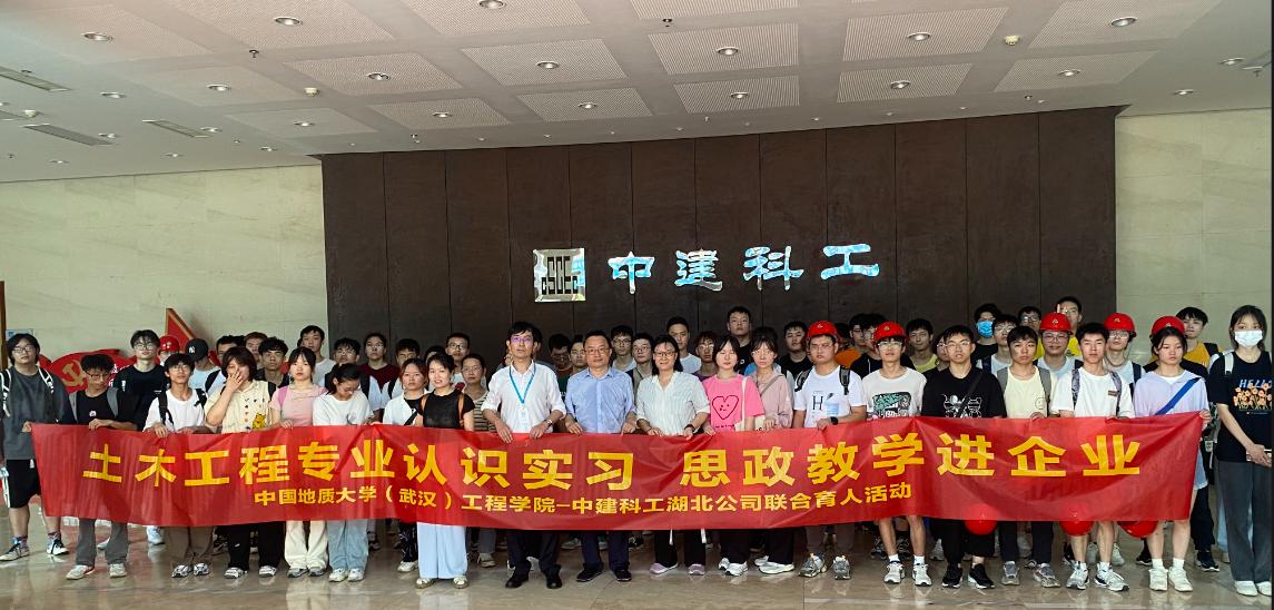中建科工湖北公司人力资源部招聘专员张毅、向家兴全程陪同师生实习。