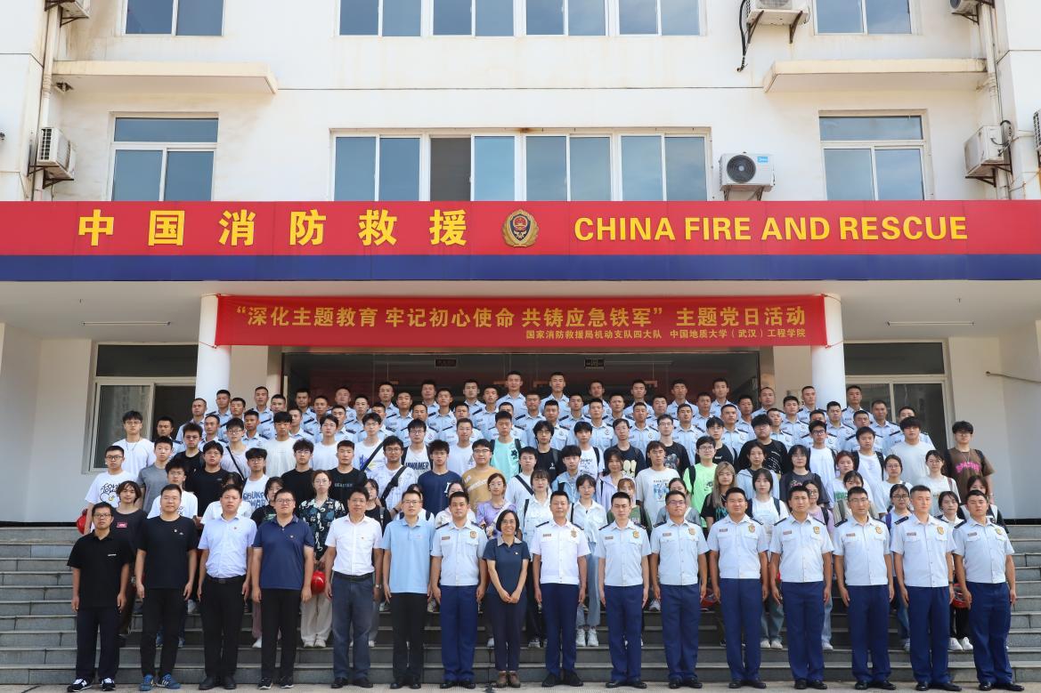 政治教导员王晨庚表示中国地质大学是全国重点高校,一直以来坚持弘扬“艰苦朴素 求真务实”的校训精神,坚持弘扬人与自然和谐发展的价值观,这也和我们消防救援队伍的历史发展十分吻合,地大师生的到来必将使我们更好的将“牢记训词,永做忠诚卫士”的主题教育推向深入,必将使我们更好的将主题教育学习成果转化为战斗力和精神动力,践行“刀山敢上、火海敢闯,招之即来,来之即战”的坚定信念。四大队在2008年10月成立,驻地湖北武汉,主要承担森林草原灭火、抗洪抢险、地质灾害救援职责,同时还承担湖北全省森林防火科普宣传和协同地方政府消防队伍灭火业务培训等工作,多次被评为基础建设先进大队,2020年大队被评为全国119先进集体,应急管理部抗疫先进集体,荣立集体三等功一次,希望在这次联合党建过程中学习和借鉴地大的党建经验,也期待和地大在教学实习基地、人才培养等方面进行深入交流与合作。