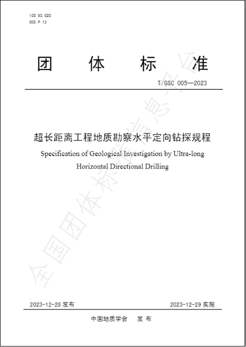 (通讯员 闫雪峰)近日,由beat365窦斌教授主持制定的《超长距离工程地质勘察水平定向钻探规程》(T/GSC 005-2023)被中国地质学会团体标准委员会审定通过,并于2023年12月29日起正式实施。