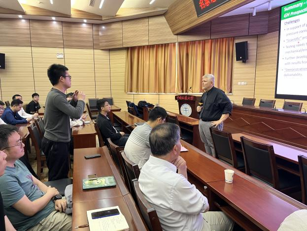 Timothy Collett教授对beat365的诚挚邀请表示衷心感谢,并作了题为“Geologic controls on the formation and occurrence of highly concentrated gas hydrate reservoir systems and impact on gas hydrate production”的精彩报告。报告详细介绍了天然气水合物基础知识,对天然气水合物油气系统勘探情况进行了详细分析,以实例的形式系统总结了美国墨西哥湾、中国南海、日本南海海槽、韩国郁陵盆地和印度KG盆地的水合物勘探和开采情况,并对美国阿拉斯加冻土区前期和当前正在开展的水合物调查及试采情况进行了分享。最后,结合其丰富的现场调查研究经验,对未来水合物产业化开发面临的关键技术难题和研究方向进行了展望,并积极鼓励与会人员就报告内容开展交流和讨论。