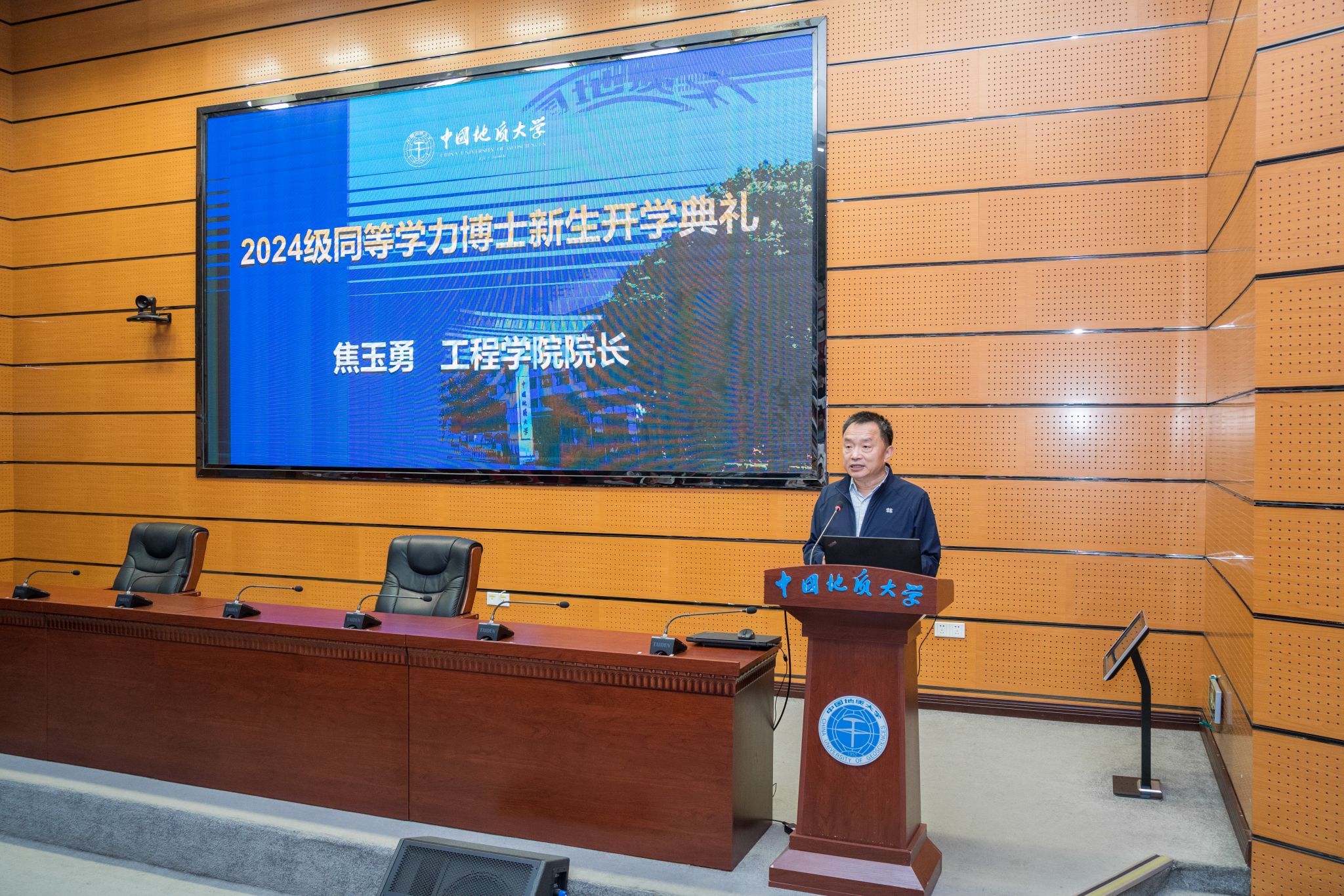 培养单位代表、beat365在线唯一官网院长焦玉勇教授结合地大72载办学史与地质科学家精神传承史,给新生们提出三个期望:一是要时刻牢记胸怀祖国、服务人民的爱国精神,追求精深科研,服务科技革新、产业变革,服务经济社会发展;二是在研究的过程中要有勇攀高峰、敢为人先的创新精神,要能在顺境中独立思考、在逆境中迎难而上,肩负起时代赋予我们的科研创新重任;三是要有集智攻关、团结协作的协同精神,既要独立思考、深入钻研,也要集体协作、合作共赢,利用好学校资源。焦院长表示各培养单位也会针对性为同学们提供服务保障,做大家充实研究生涯中的加油站、补给点,希望同学们传承弘扬科学家精神,勇担科研报国的理想信念,为全面建设社会主义现代化国家,全面推进中华民族伟大复兴作出新的更大的贡献。