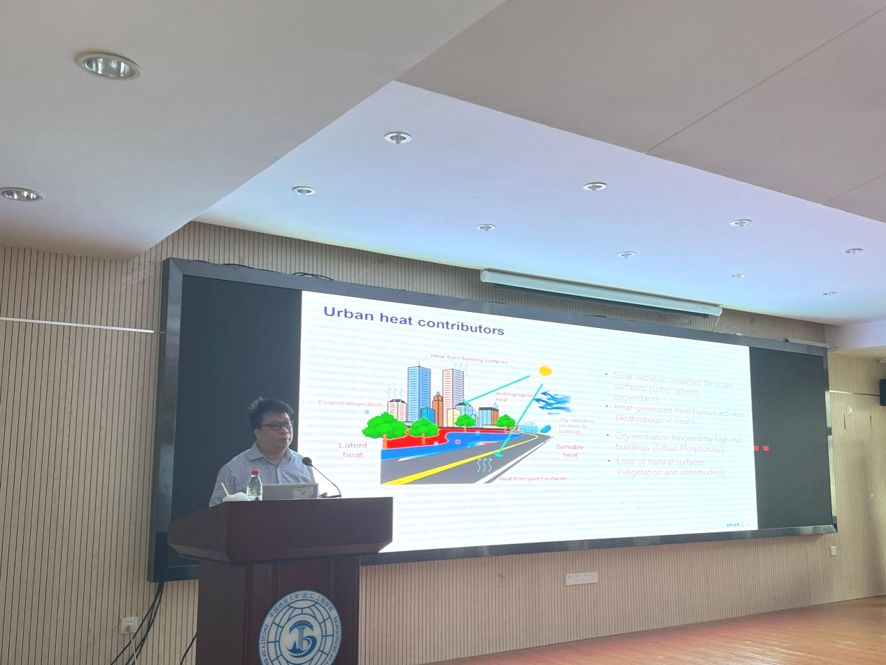 Wan Man Pun教授作了题为“Cool Surfaces for Urban Cooling in the Tropics”的学术报告, 报告以降低新加坡的城市温度为切入点,详细介绍了辐射冷却涂层的作用机理,并通过数值模拟和实验研究了在城市建筑物、马路等区域使用辐射冷却涂层作为热带城市冷却策略的有效性。最后,Wan Man Pun教授对未来制作新型辐射冷却材料的关键技术难题和研究方向做出了展望。