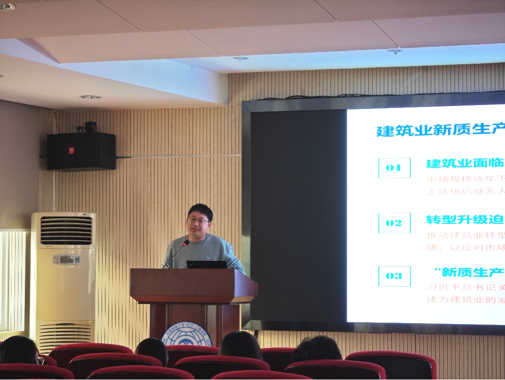 孙廉威院长以企业视角下建筑业新质生产力核心要素浅析为主题,首先通过行业实例说明了当前建筑行业和土木工程行业的发展现状,并且对企业发展的瓶颈进行了阐述。随后,从企业角度提出了发展新质生产力的思考,新质生产力是推动建筑业转型发展的内在需求,也是推动建筑业颠覆性变革的重要着力点。孙廉威院长结合他自身及团队在企业进行科技创新工作实例,分析提出了建筑业新质生产力的核心要素。最后,孙廉威院长向同学们分享了企业对复合型人才的迫切需求,并详细讲解了如何通过培养多领域技能和知识,将自己塑造成为企业急需的复合型人才,从而增强个人的职业竞争力。