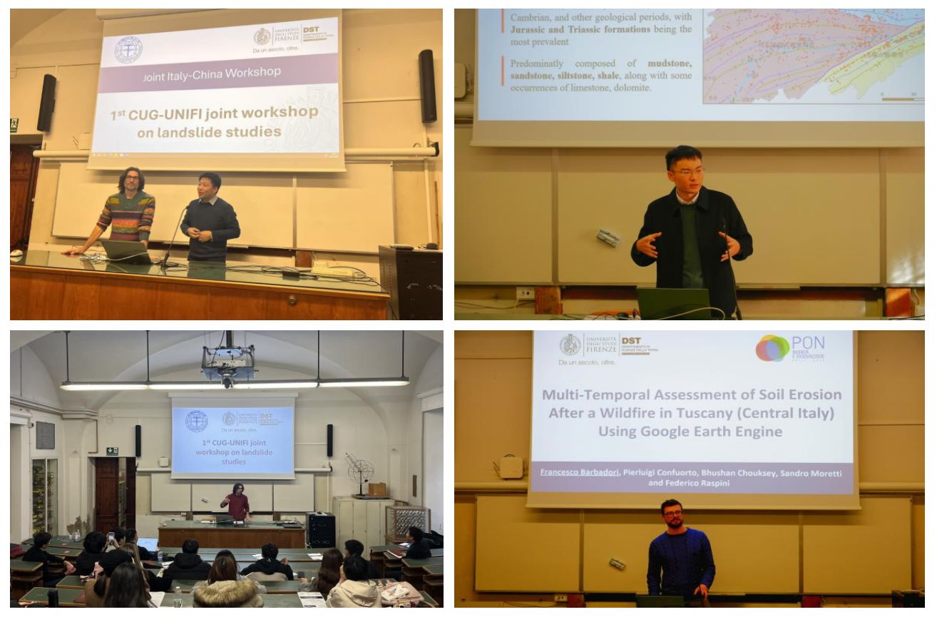 1月8日至9日,beat365在线唯一官网师生和佛罗伦萨大学师生开展了为期2天的中意滑坡研究联合研讨会。beat365在线唯一官网李德营教授、刘书豪老师与朱仕林、佘祥杰、王凯等博士生和佛罗伦萨大学Samuele Segoni教授、 Nicola Nocentini、 Francesco Barbadori、Istan Szakolczai等博士连续开展了十余场专题讲座,内容涵盖“高度植被覆盖地区潜在滑坡的识别”“基于机器学习方法的滑坡时空预测”“考虑地质环境空间差异性的区域滑坡降雨阈值研究”“使用谷歌地球引擎对托斯卡纳山火后的水土流失进行多时间尺度评估”等主题,两校师生就上述主题进行了广泛深入的研讨交流。