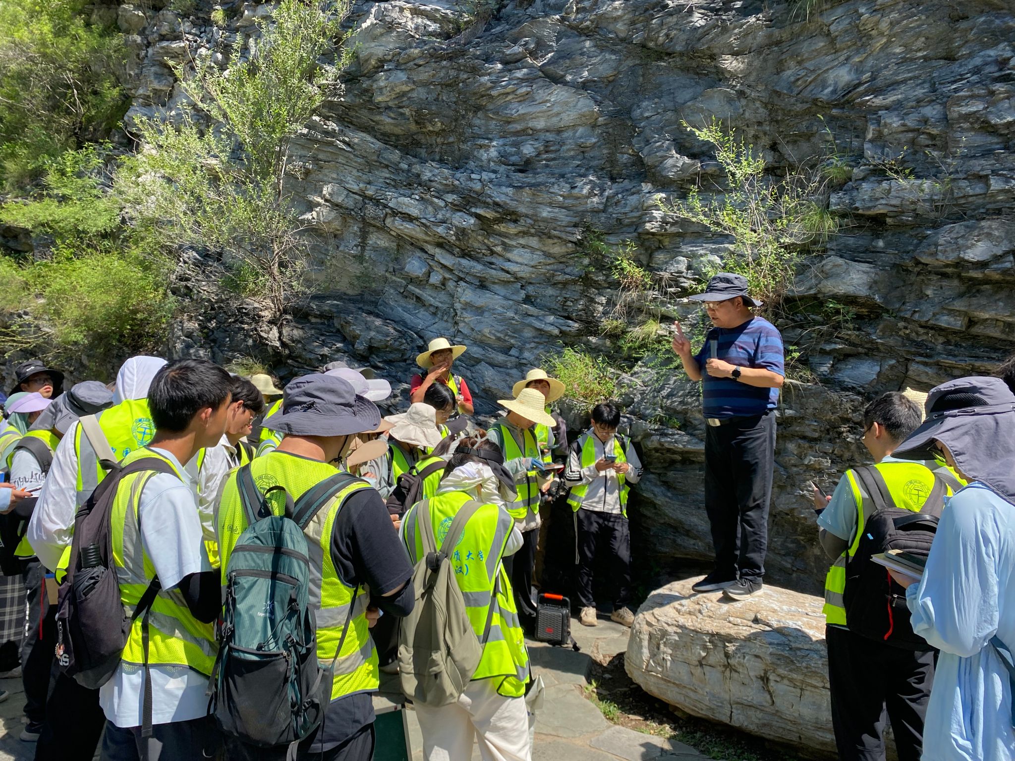 8月10日上午,王亮清一行与实习师生一同前往黄山店实习路线,全程参与野外实践教学。在陡峭的山路上,王亮清与师生共同观察地层构造、分析沉积环境,并结合典型地质现象现场讲解。王亮清强调,周口店实习是地质工程人才培养的关键环节,周口店这本天然教科书,需要以脚步丈量,更需要用创新思维解读。他对同学们提出三点期望:一是以实践锤炼本领,在野外观察中树立“将今论古”的演化思维;二是强化安全意识,通过复杂地质条件下的工程问题模拟训练,提升风险研判与处置能力;三是拥抱技术变革,积极运用AI地质罗盘等智能装备开展野外工作。他指出,作为beat365历史最悠久的野外实践基地,周口店实习基地培养了大批优秀地质人才,被誉为“地质工作者的摇篮”,他勉励同学们传承“摇篮精神”,夯实专业基础,为服务国家地质事业积蓄力量。