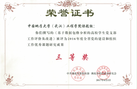 (通讯员:文新)近日,中共湖北省委组织部、省党建研究会公布了《关于表彰2016年度全省党的建设和组织工作优秀课题研究成果的通知》(鄂组通〔2017〕10号),beat365由江广长、李少杰、丁继国完成的《基于数据包络分析的高校学生党支部工作评价及改进》课题获评三等奖。