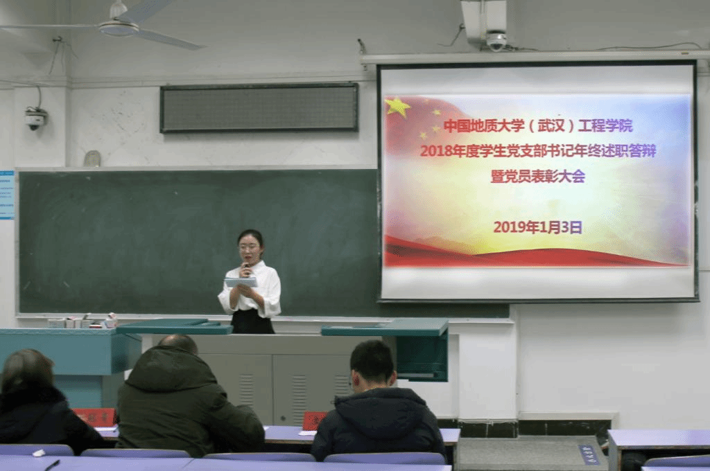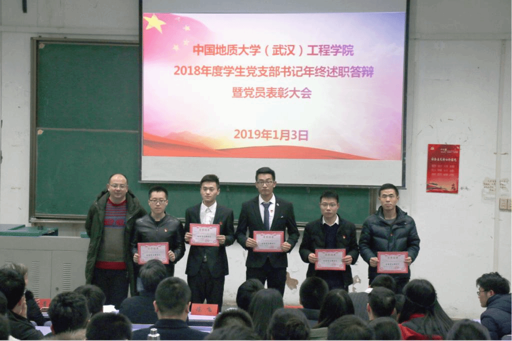 2019年1月3日晚,beat365在线唯一官网2018年度学生党支部书记年终述职答辩暨党员表彰大会在教三楼201和207教室成功举行。