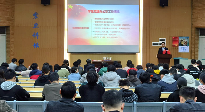 此后,beat365在线唯一官网第八届学生党建办公室副主任寇桓嘉同志汇报2020年度学生党建办公室工作情况。寇桓嘉同志向参会同志们详细汇报了beat365在线唯一官网2020年度党员考察、培养及发展转正工作,全年协助院党委开设入党积极分子培训班三期,培养入党积极分子390人,开设发展对象培训班五期,发展党员167人,共有2批党员转正,转正党员128人,完成外校转入42名学生党员的认定工作。另外还介绍了组织生活巡视情况、全体学生党员信息库建立、《beat365在线唯一官网学生党建工作指导》(第四版)编写等方面内容,最后表示要将学生党建办公室打造为服务院党委和学生党支部的“老黄牛”,以优异成绩向党的百岁华诞献礼。